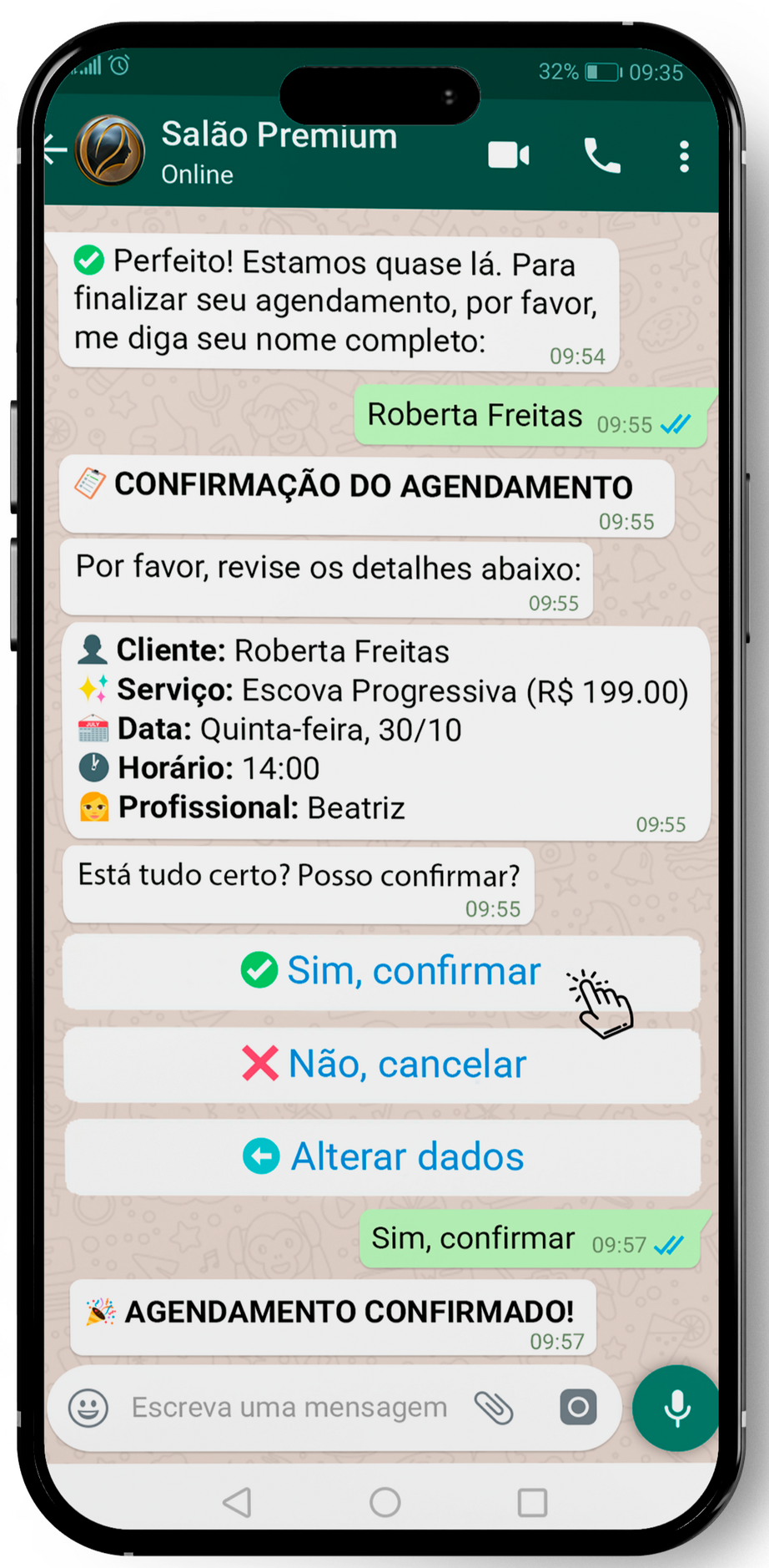 dos clientes confirmam horário sem você enviar uma única mensagem